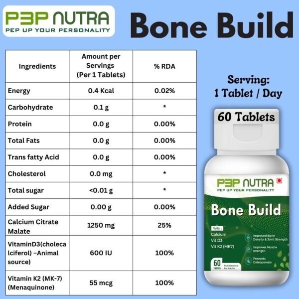 Bone Build is a specialized Calcium supplement for strengthening bones, teeth’s and general Skeletal structure. It helps to overcome osteoporosis and other calcium requirements of an adult including Seniors.