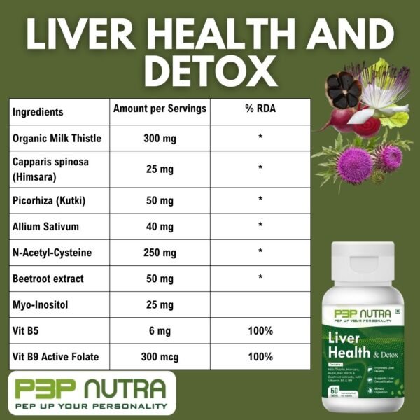 Liver Health & Detox from P3P Nutra is a select combination of Herbal Extracts and Vitamins for Liver detoxification, liver rejuvenation and enhance digestion.