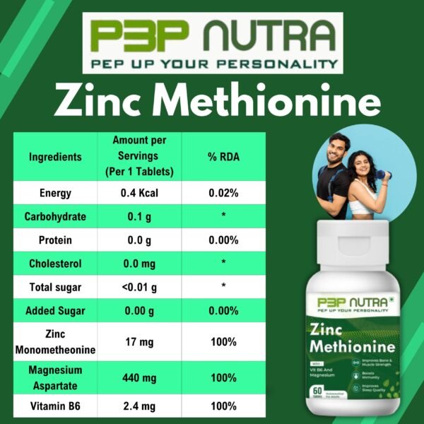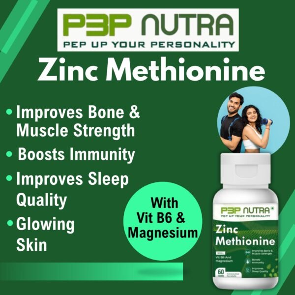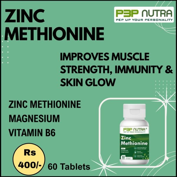 Zinc Methionine from P3P Nutra is a A specialized supplement to ensure higher energy levels, strong muscles, bones and healthy nerve function.